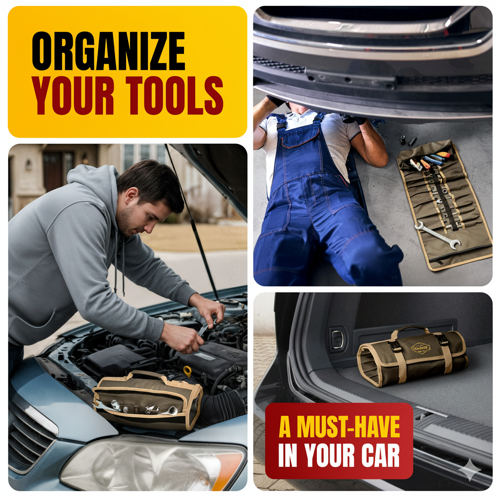 • Keep your Tools & Accessories Organized and Carry Them in a Small Tool Roll - Hang The Roll Up Tool Bag Organizer in Your Car Garage or Work shop . Carry this Tool Rool with you as a Mechanic Bag or as a small roll up tool bag for truck Tool Bag